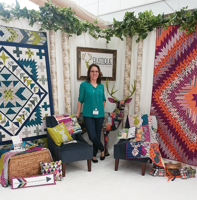 Emily Herrick, of Crazy Old Ladies has a new collection out as well. It’s called Rustique and it’s full of trophy deer, geometrics and silhouettes in two fabulous color palettes. Many of which would look quite lovely along side some of my new fabrics. I sense a fabric play date in the near future! Her booth even had a mascot, isn’t Harvey handsome?