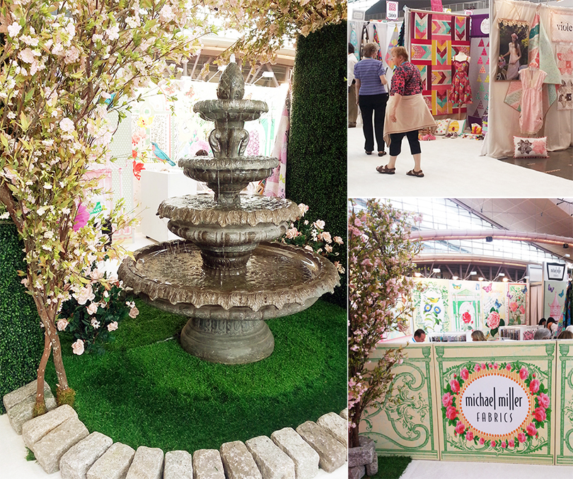 Michael Miller’s booth was romantic and springy and gorgeous, complete with topiary hedgerows and a working fountain in the very center. They always come up with something fantastic and the view from my booth was awesome!